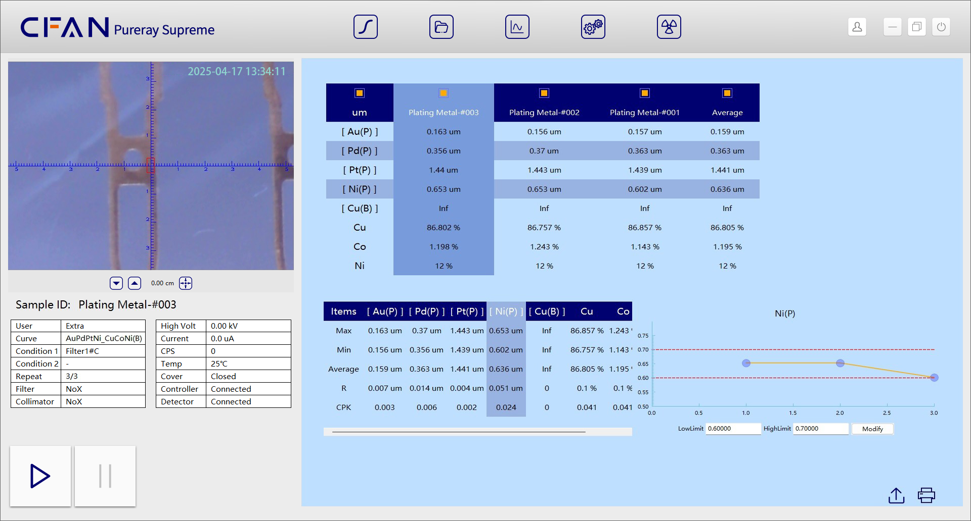 PURERAY Supreme is an X-ray fluorescence spectrometer developed by CFAN Instrument for the non-destructive coating analysis. It can be widely used in various industries, such as the electroplating, chemical plating, connector and PCB. The analyzer adopts an USA AMPTEK customized Fast-SDD detector, an embedded computer with a 12-core CPU and the Smart FP algorithm. Without standard samples, the spectrometer can measure the thickness and composition of coatings at the same time. It can fast and accurately analyze 10-layer coatings.